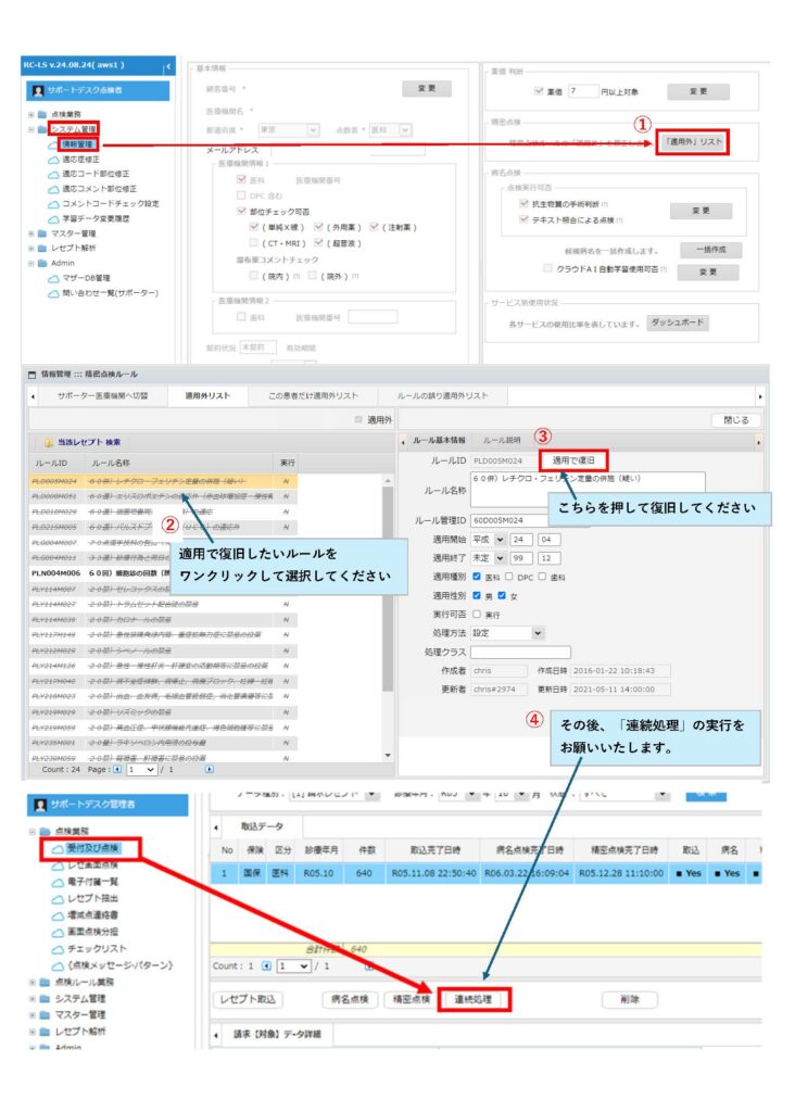 また、すでに該当ルールを適用外とされた医療機関様におかれましては、必要に応じて該当ルールの復旧をお願いいたします。